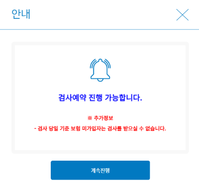답변3) 시스템이 자동으로 검사 대상 여부를 조회하므로, 대상이 아닐 경우 예약이 불가능하며 사유가 안내됩니다.
