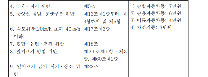- 교통 법규 위반 및 범칙금 관련 법령 확인