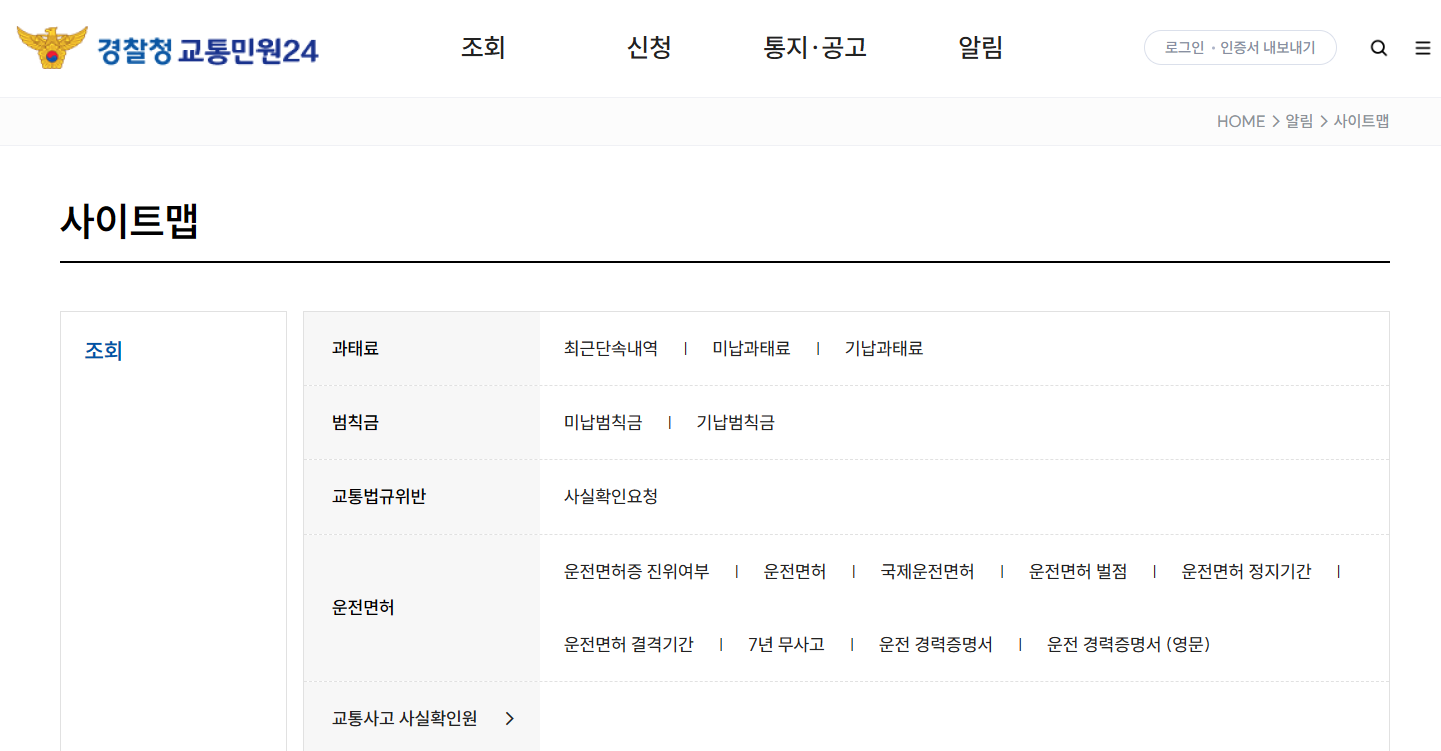 📌 2) 도로교통공단 교통 범칙금 안내 시스템