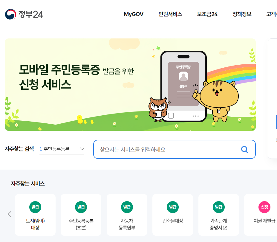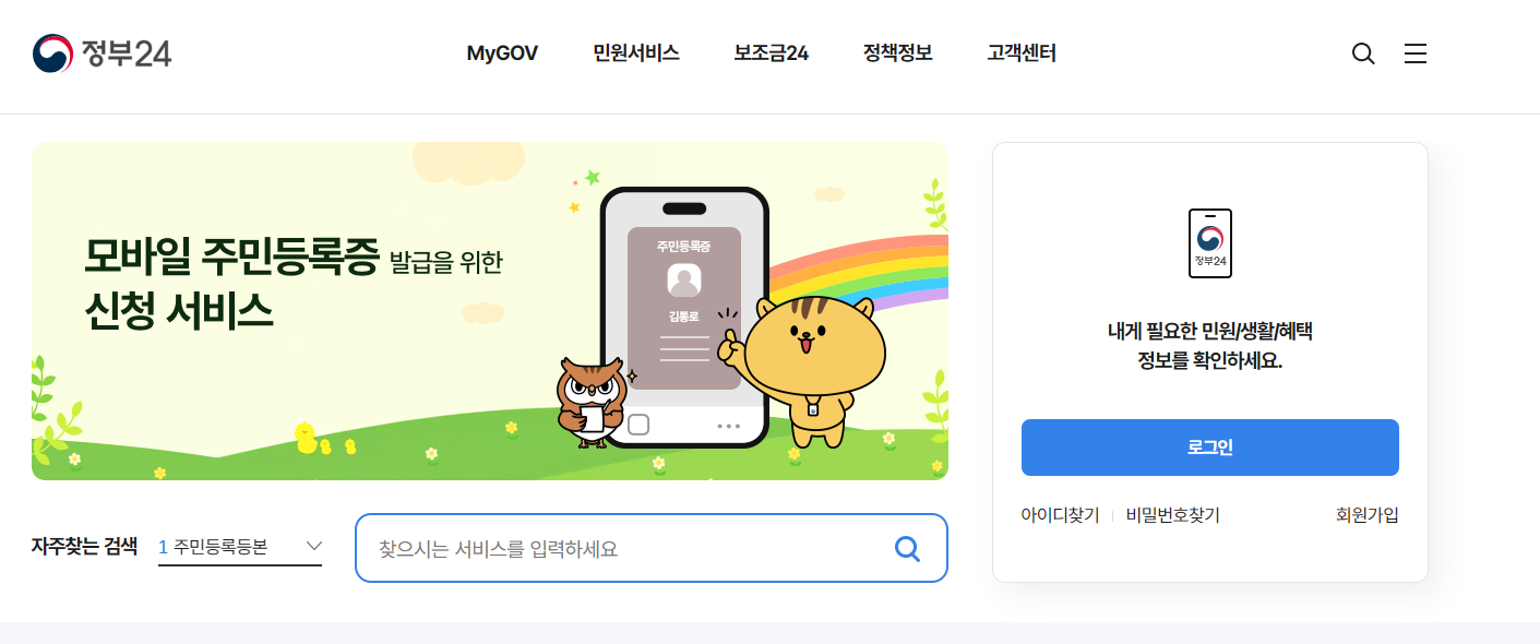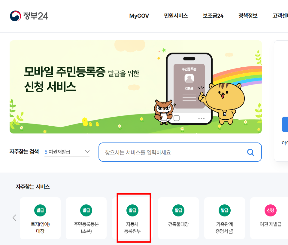 정부24는 행정안전부가 운영하는 대표적인 통합 민원서비스입니다. 자동차 관련 문서뿐만 아니라, 주민등록 등본, 건강보험 자격확인서 등도 함께 처리할 수 있어 많은 국민이 이용 중입니다.