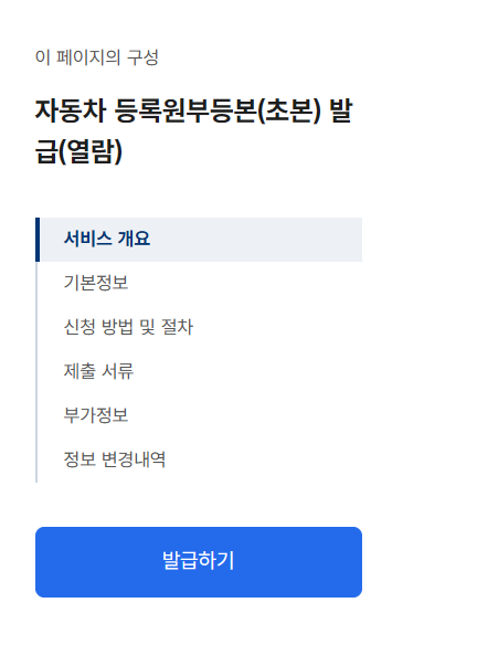 - 메인 검색창에 자동차등록증 또는 자동차등록원부 검색