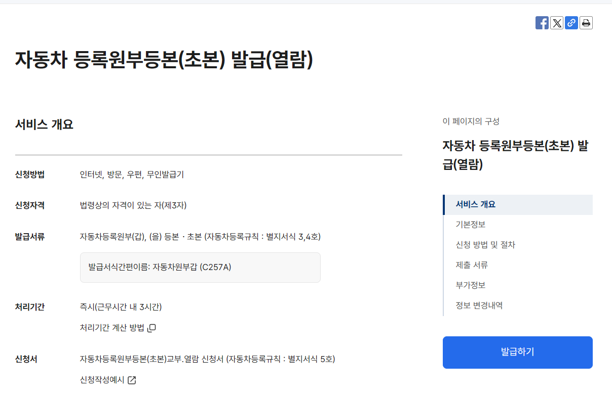 이 사이트는 차량을 직접 소유한 개인만 이용할 수 있으며, 대리 발급은 불가합니다.