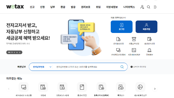 - 고지서 수령 및 납부(위택스 가능)