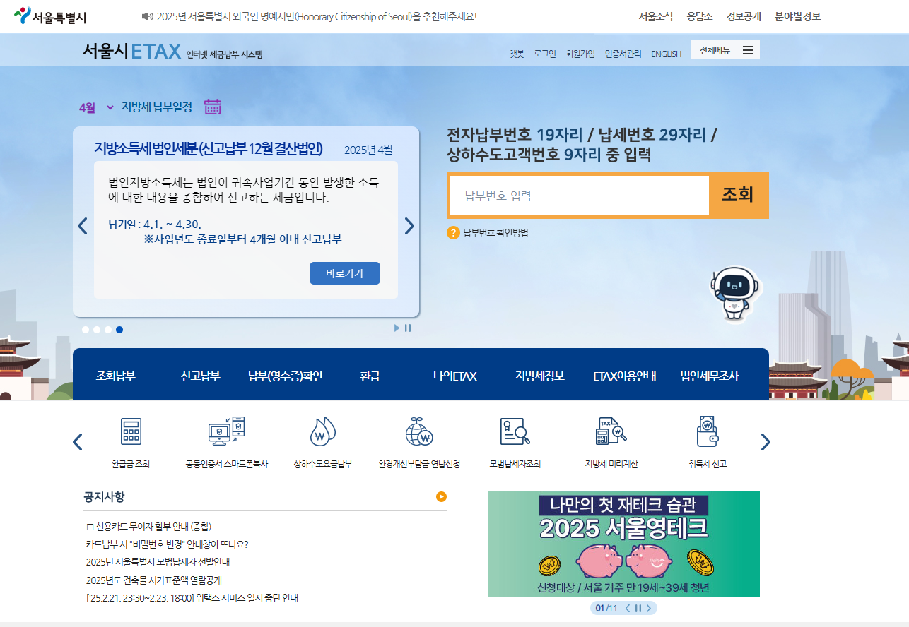 2. 서울시 이택스(ETAX) – 서울 지역 전용