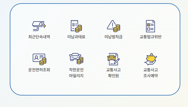 이파인은 경찰청에서 운영하는 교통민원 종합 시스템입니다. 과속, 신호위반 등 일반 교통위반 내역 외에도 주정차 위반, 범칙금, 과태료 등 전체 교통 단속 기록을 일괄 조회할 수 있습니다.