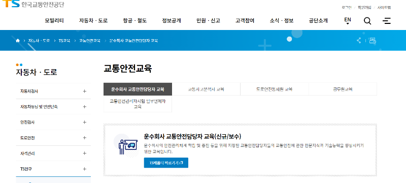 사업용 차량 운전자나 일반인을 위한 교통안전 교육 프로그램도 온라인 신청이 가능합니다.