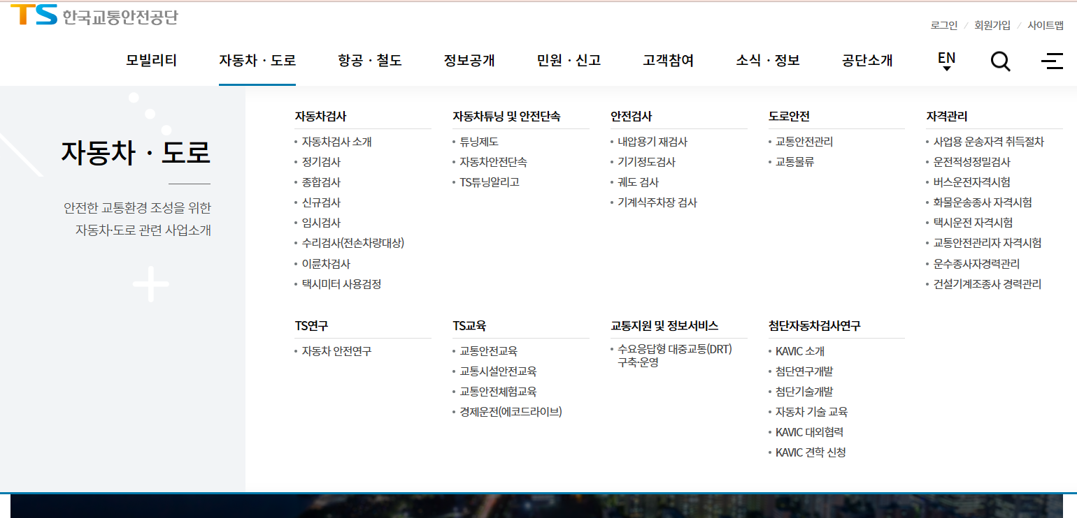 한국교통안전공단 홈페이지는 사용자가 가장 자주 찾는 기능 위주로 구성되어 있습니다.